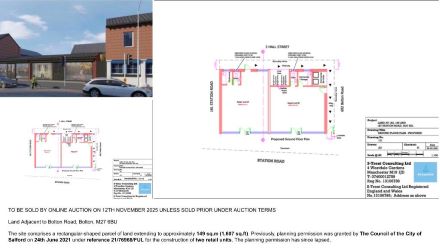 The site comprises a rectangular parcel of land extending to approximately 149 sq.m (1,607 sq.ft). Planning permission was previously granted by Salford City Council on 24 June 2021 (Ref: 21/76968/FUL) for the construction of two retail units; however, this consent has now lapsed.